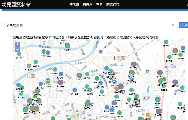 ▲ 幼園通地圖模式找學校、找裁罰都很好用